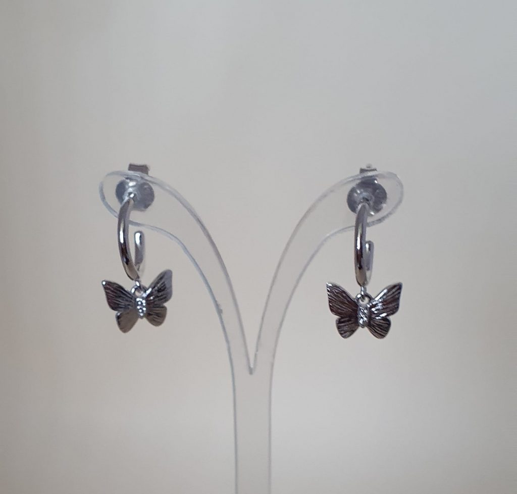 Aretas de plata con una mariposa cyma hace 4 años Areta de plata de tamaño mediano con una mariposa colgando de la areta