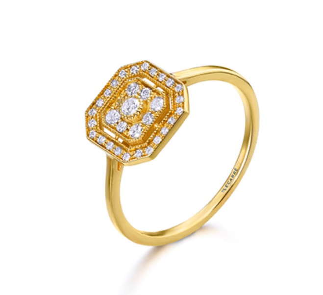 Colgante de oro de 18 kt con un diamante de 0,044ct dentro de un cuadrado. Tiene cadena de 40 cm