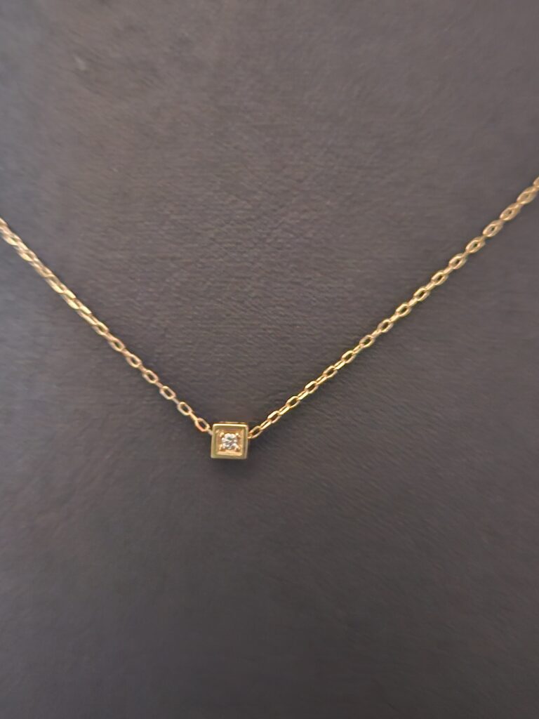 Colgante de oro con diamante en cuadrado cyma hace 2 meses Colgante de oro de 18 kt con un diamante de 0,044ct dentro de un cuadrado. Tiene cadena de 40 cm
