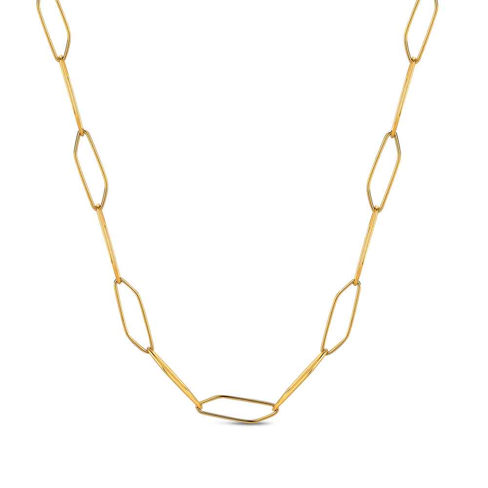 Collar de acero chapado en oro de 18 kt con estrellas de mar de 17 mm aproximadamente. Mide 45 cm de largo ampliable otros 5 cm. Es resistente al agua.