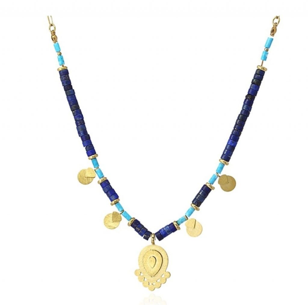 Collar Miyuki azúl cyma hace 4 años Collar Miyuki azúl de Anartxy con colgantes de acero dorado. El cierre es también de acero dorado.