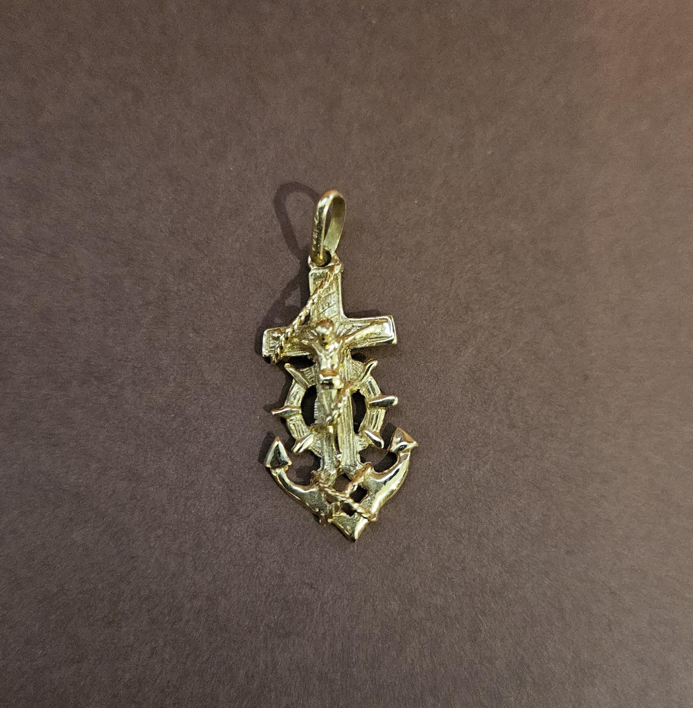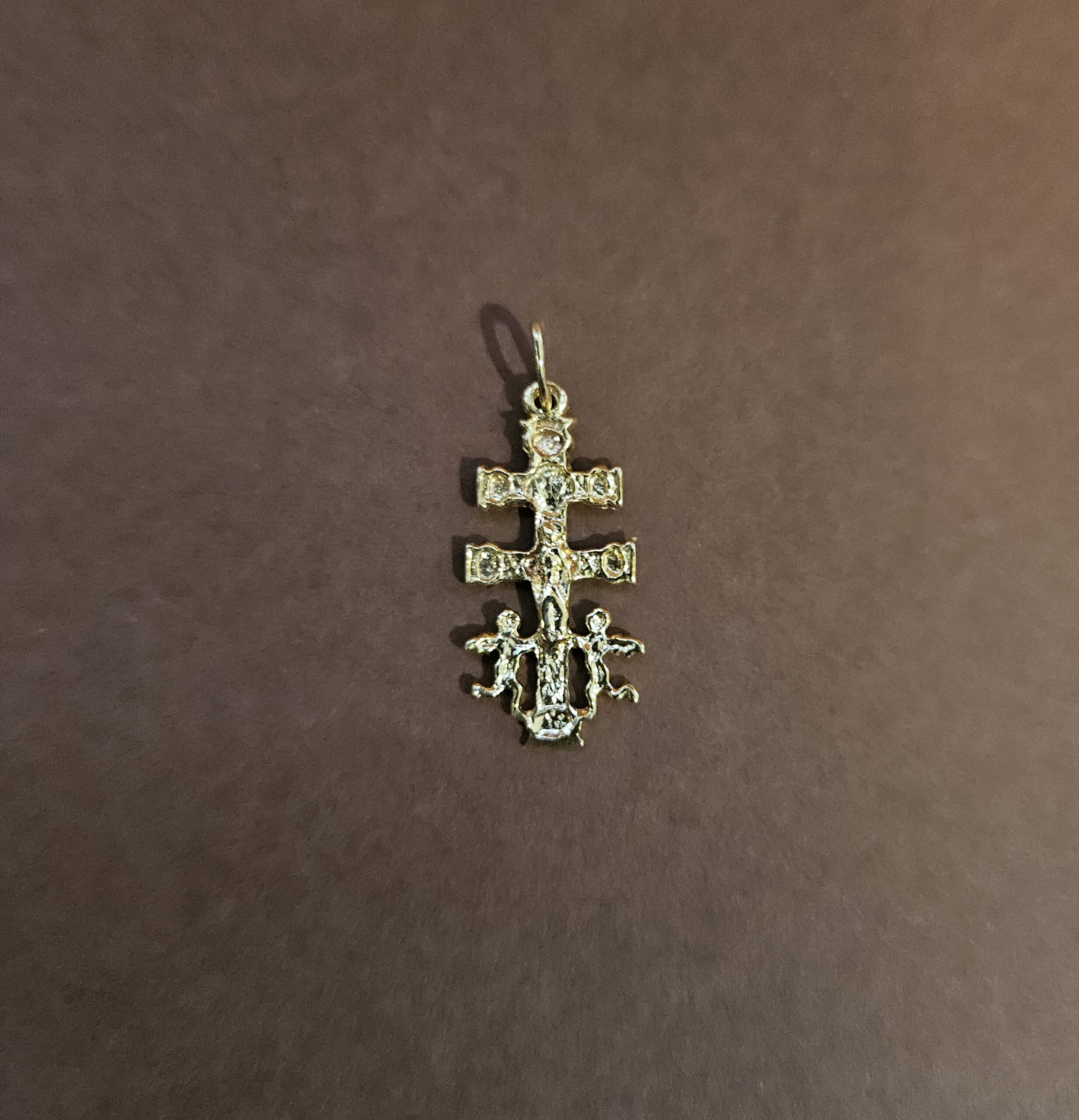 Cruz de Caravaca en oro con medidas aproximadas de 23 mm y 10 mm por la parte más ancha
