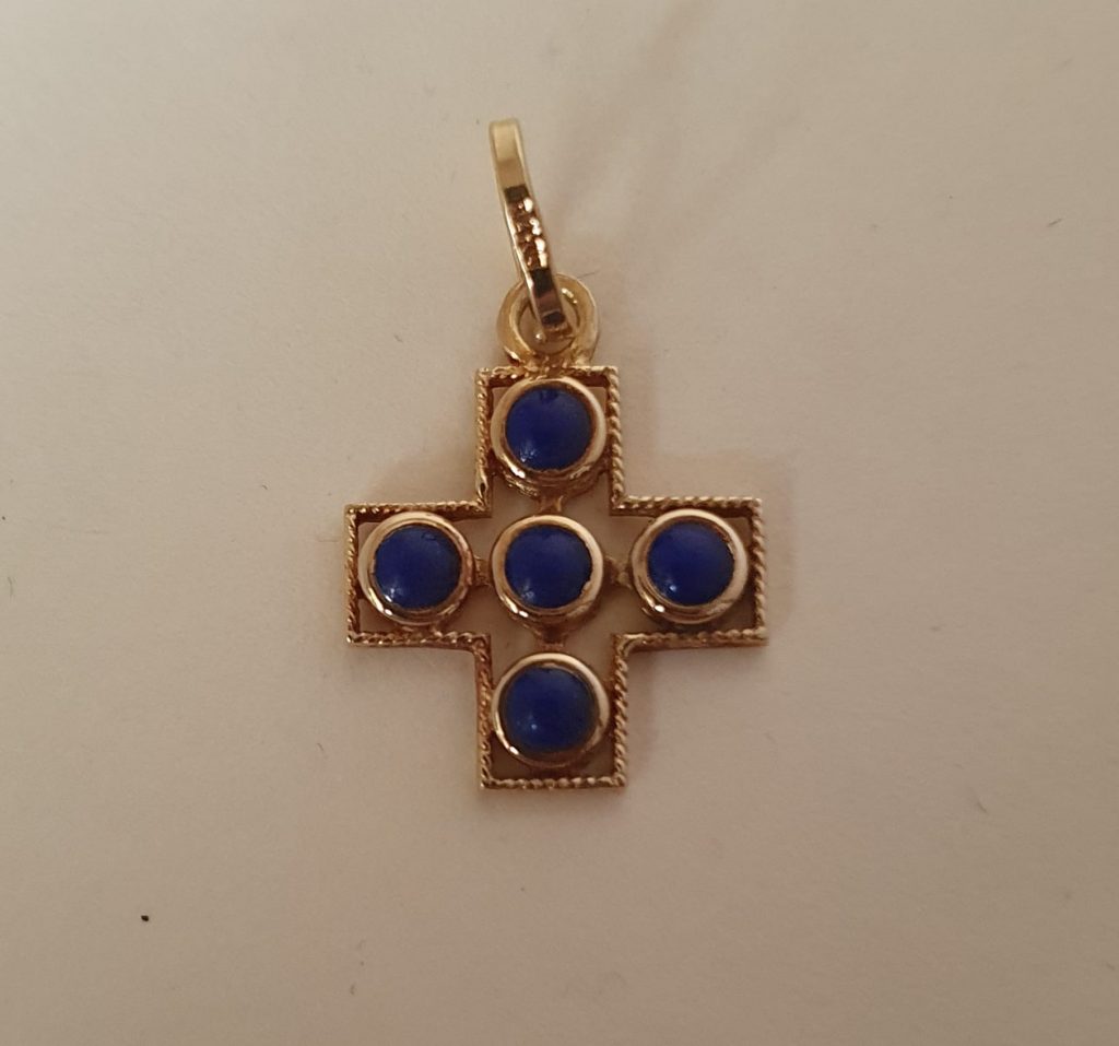 Cruz de oro con lapislazuli