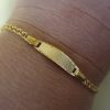Esclava de bebe en oro con la chapa matizada y rodeada de oro blanco. La enviamos grabada con lo que queráis poner sin coste adicional.