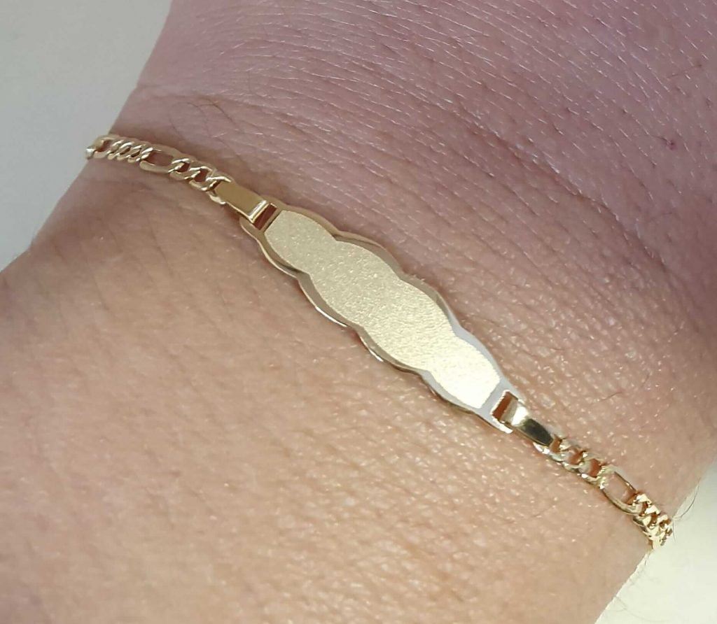 Esclave de bebe en oro con chapa en nube cyma hace 4 años Esclava de bebe en oro con chapa en nube y cadena tipo Cartier. Mide 14 cm