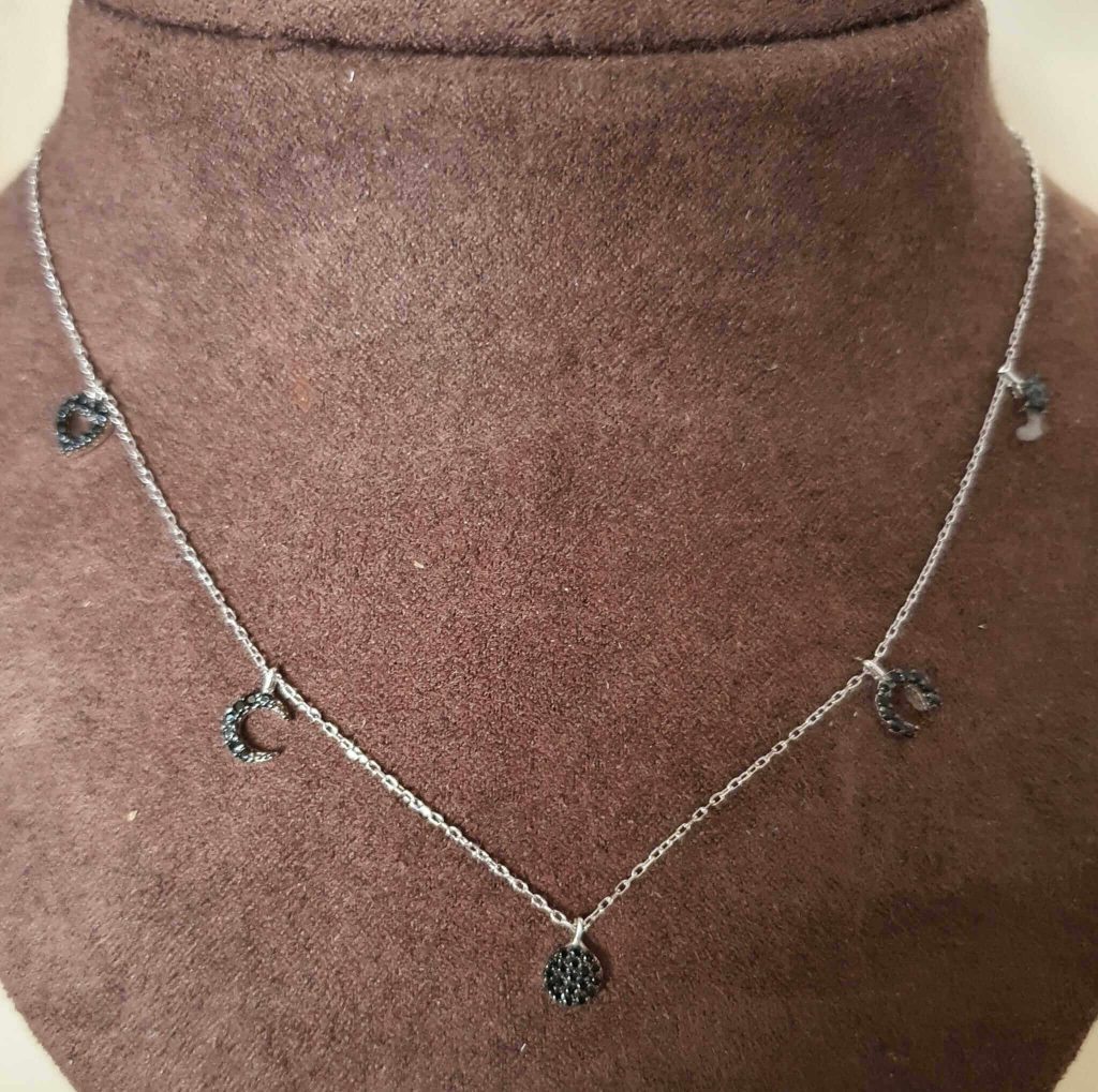 Gargantilla con circonitas negras cyma hace 4 años Gargantilla de plata con varios abalorios de plata y circonitas negras