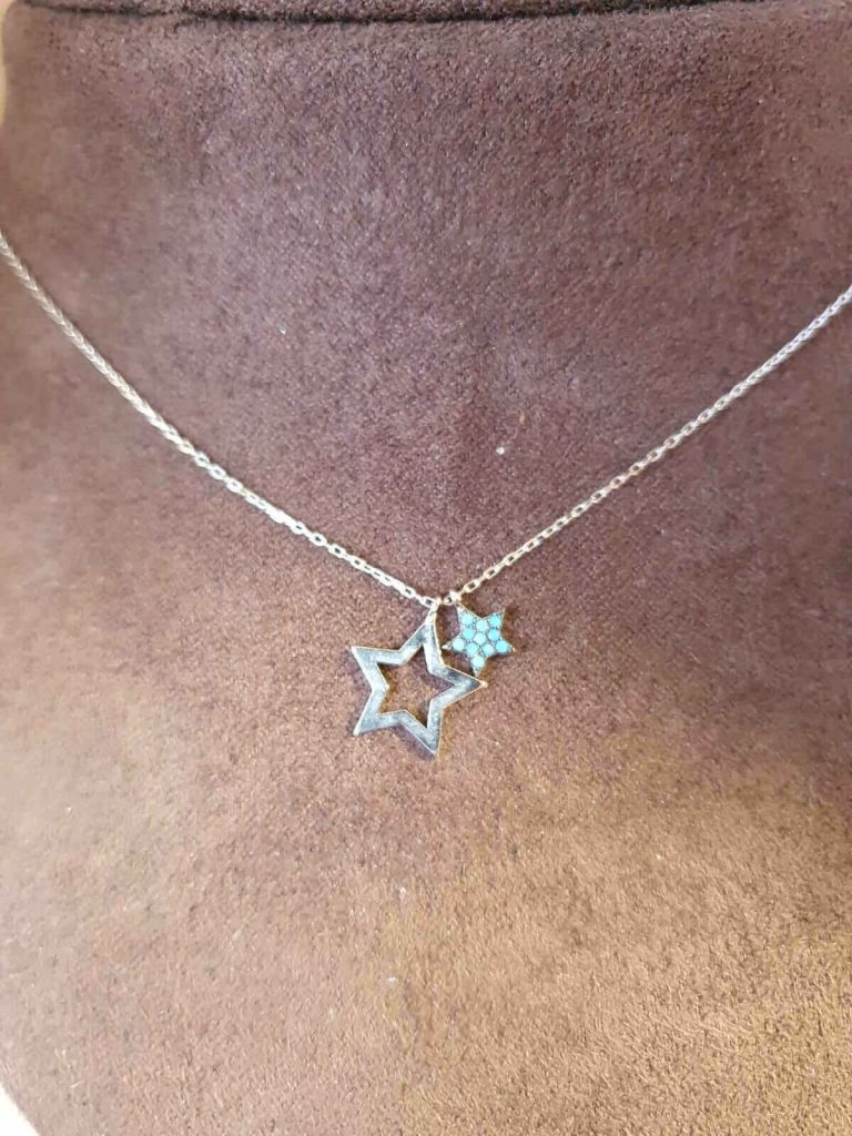 Gargantilla de dos estrellas cyma hace 5 años Gargantilla de plata con una estrella de plata y una estrellita turquesa
