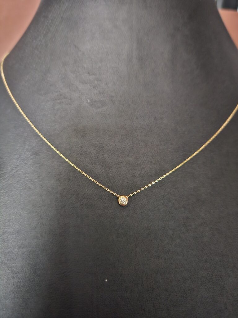 Gargantilla Le Carré de oro de 18 kt con diamante de talla brillante, color H, Pureza SI, 0,050 ct. Lleva una cadena de 40 cm de largo en oro