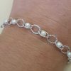 Gargantilla de plata con perla. La gargantilla es de eslabón ancho y la cruz esta rellena de perlas.