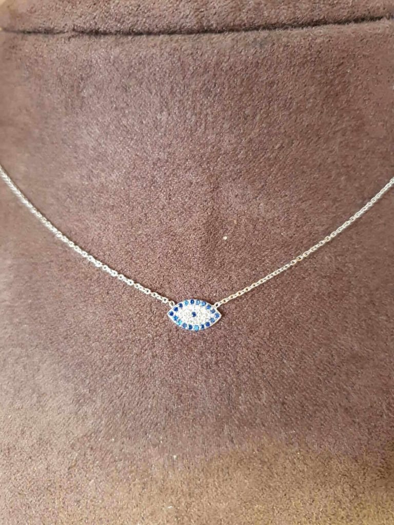 Gargantilla ojo turco cyma hace 5 años Gargantilla de plata con un ojo turco con circonitas blancas y azules