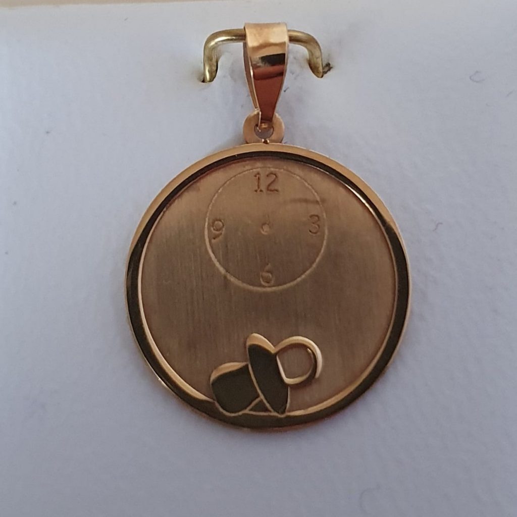 Medalla de bebe en oro cyma hace 5 años Medalla de bebe en oro con chupete y donde se puede grabar la hora de nacimiento