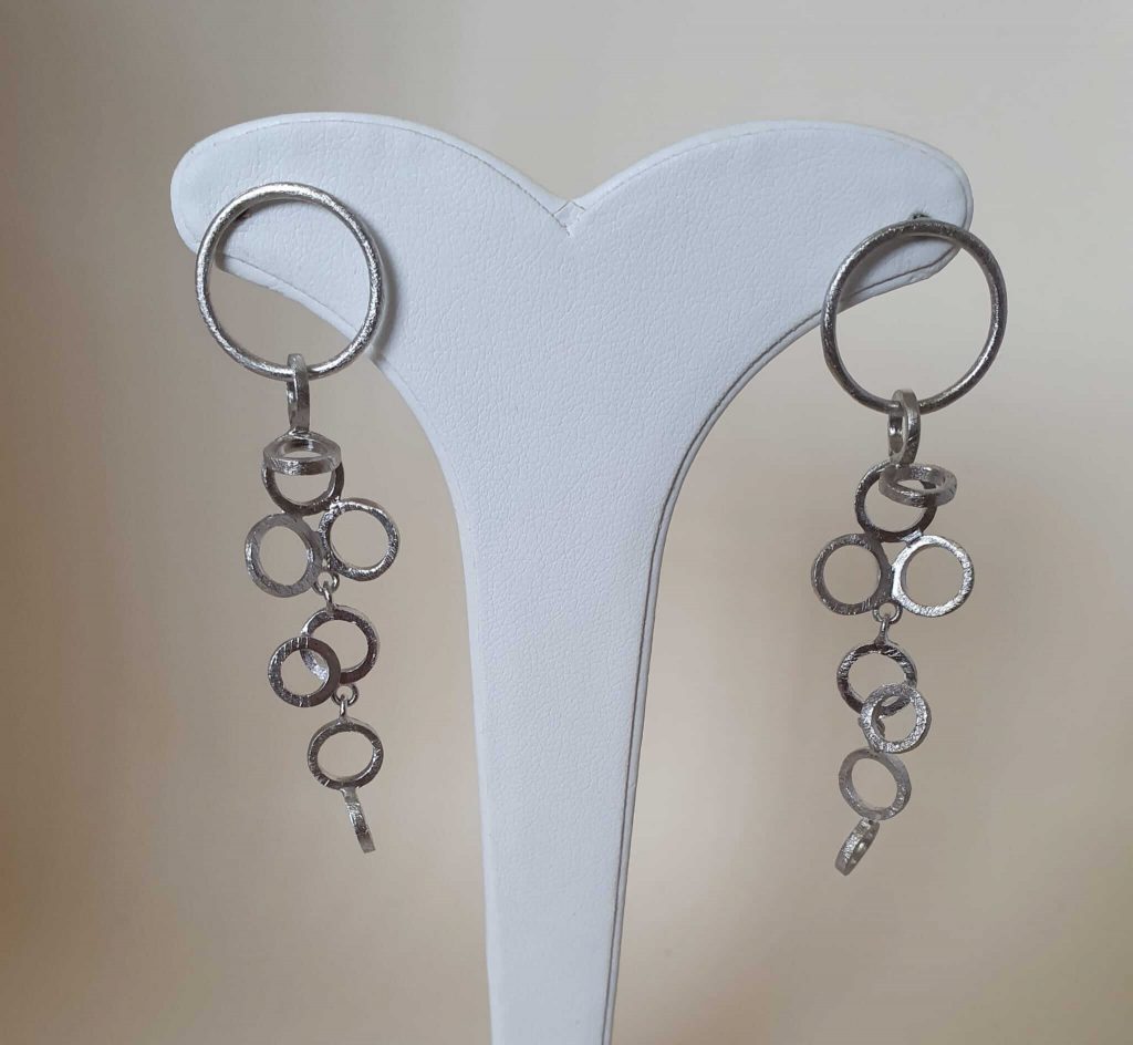 Pendientes de Anartxy con círculos cyma hace 5 años Pendientes de Anartxy de acero plateado largos y con círculos.