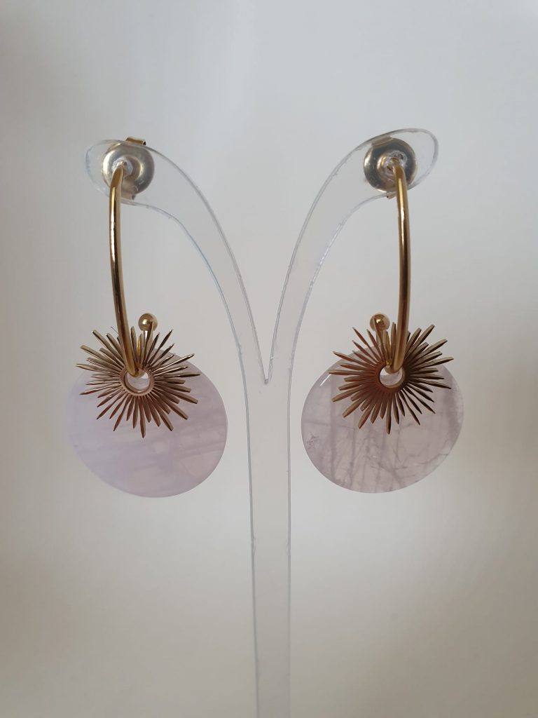 Pendientes de Anartxy en rosa cyma hace 5 años Pendientes de colgar de Anartxy en acero dorado con círculo en rosa y estrella dorada.