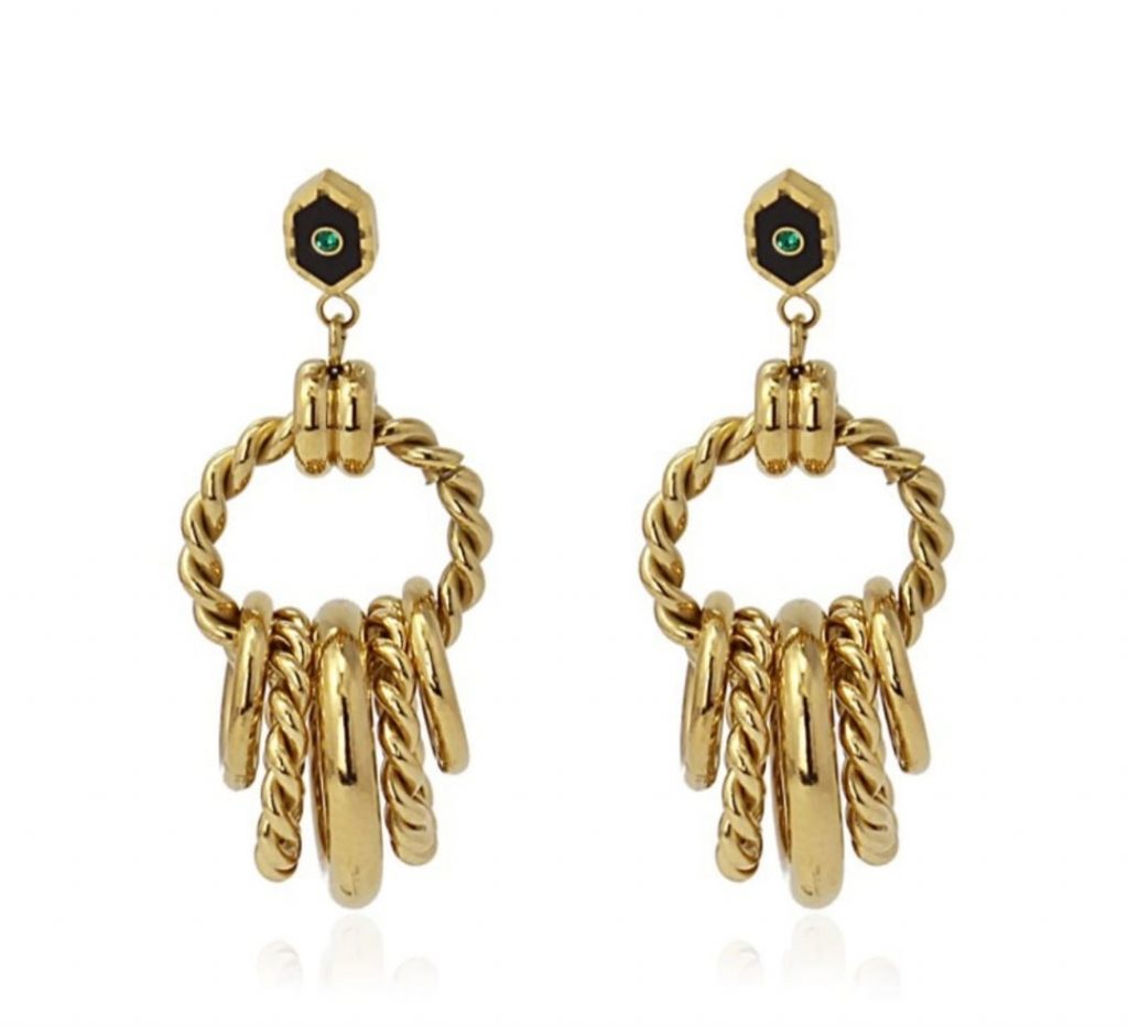 Pendientes de Anartxy cyma hace 4 años Pendientes de Anartxy en acero dorado. Es un círculo soportando varios círculos.