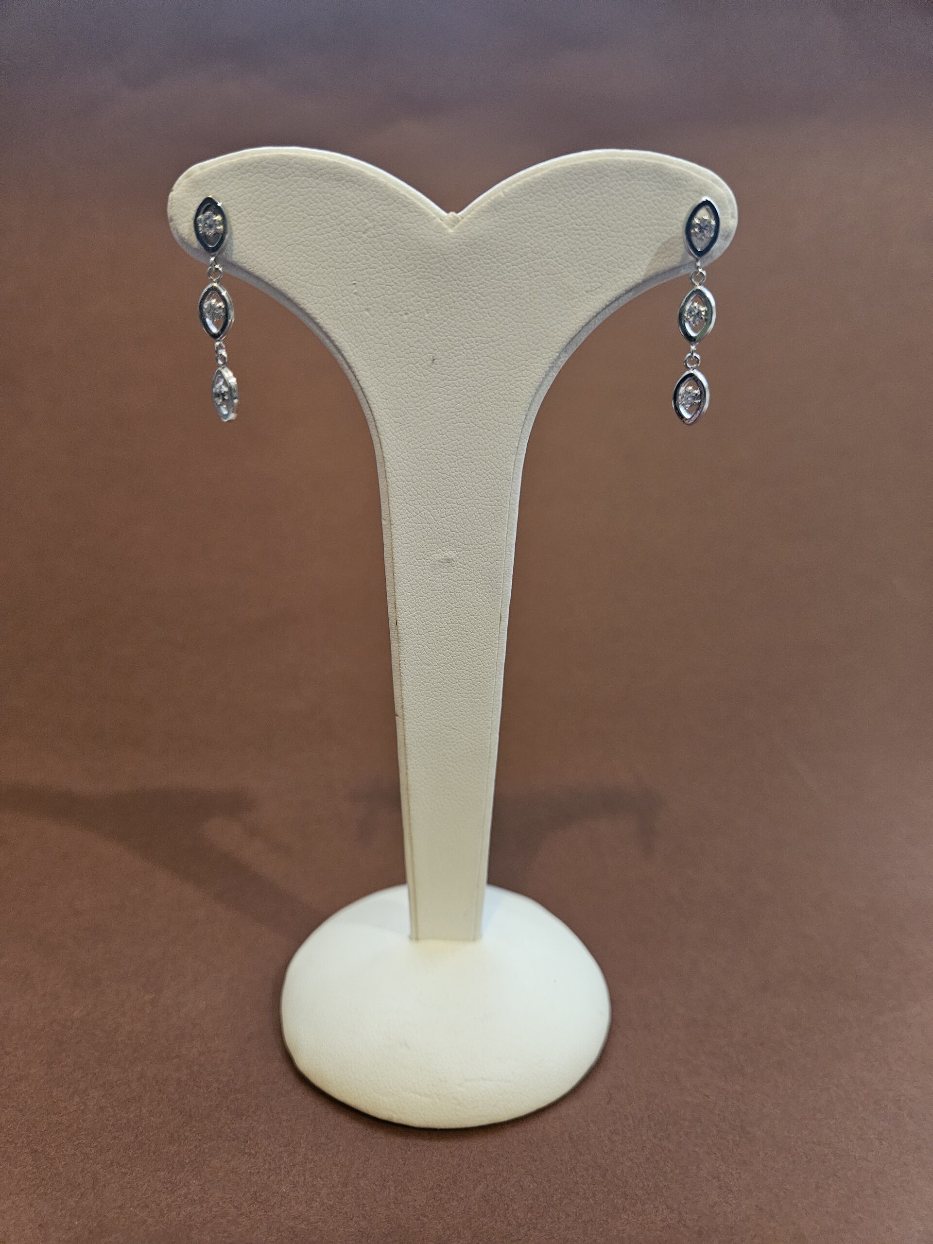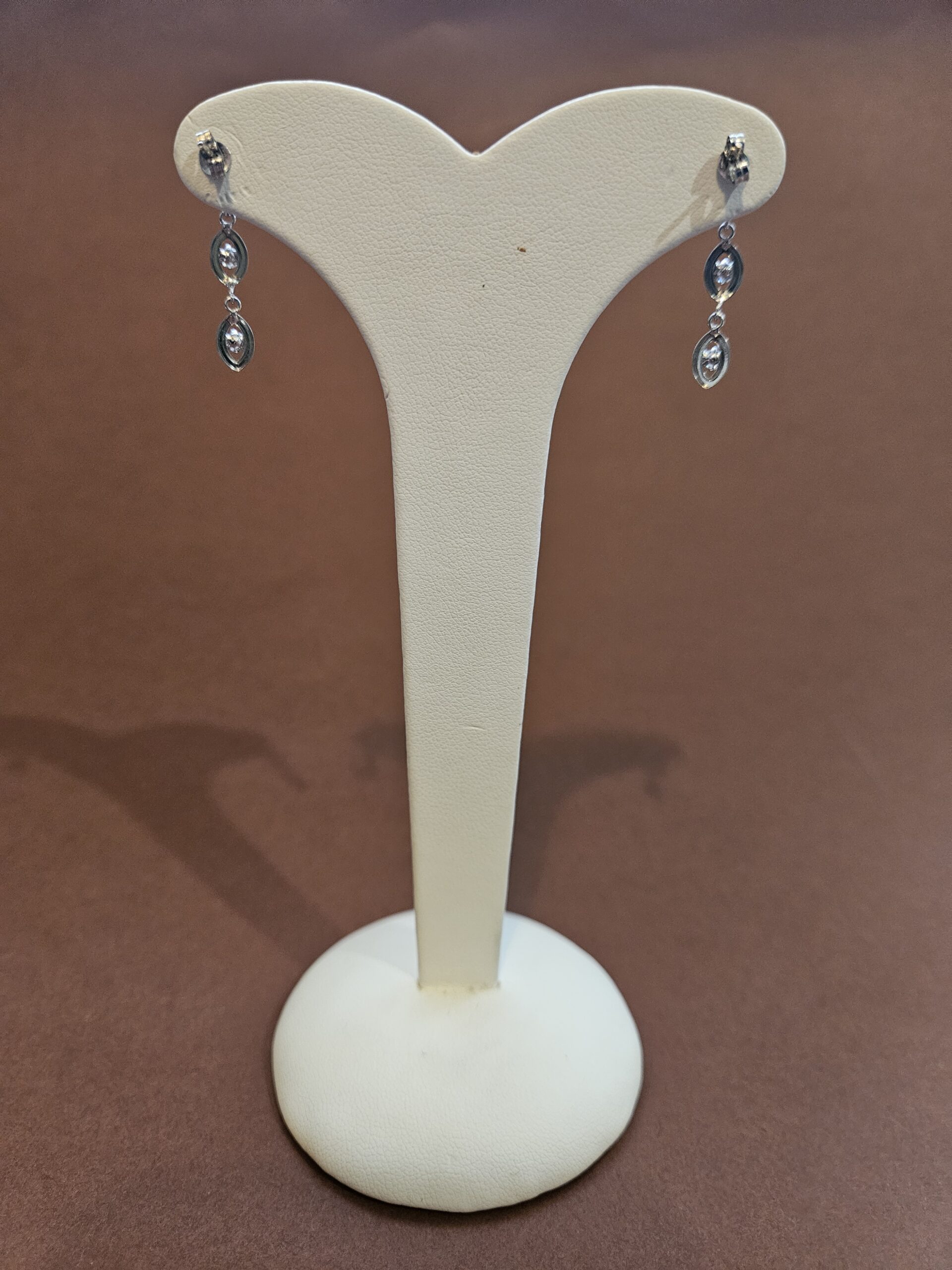 Pendientes de oro blanco semi-largos con circonitas