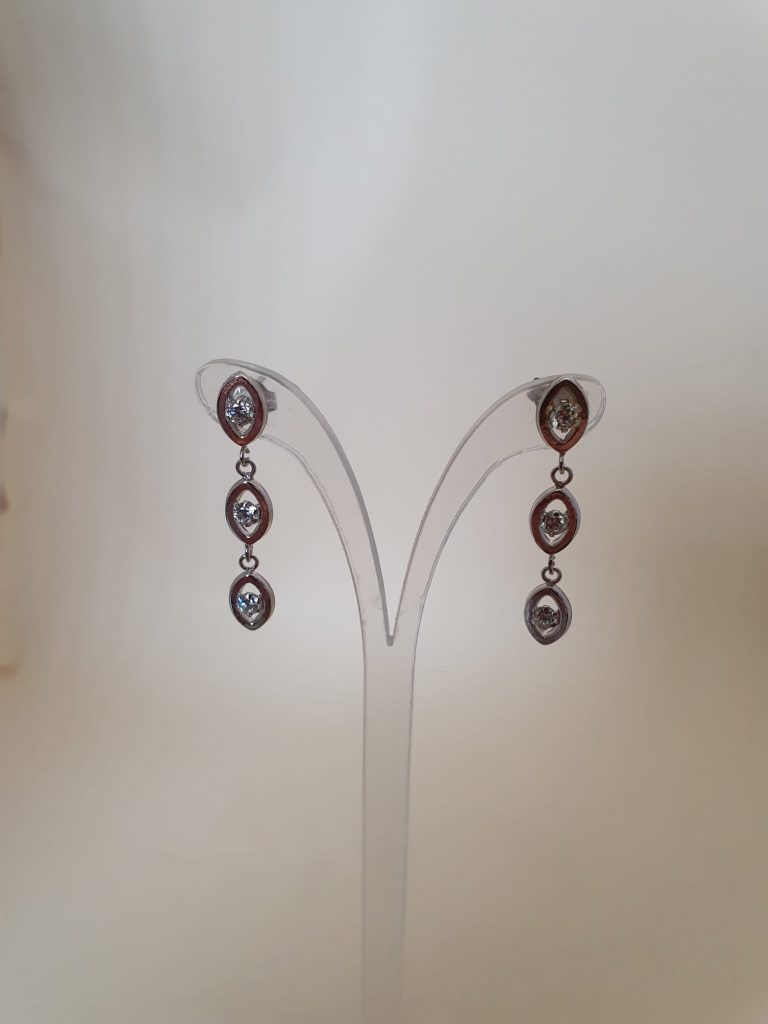 Pendientes de oro blanco con circonitas cyma hace 4 años Pendientes de oro blanco con tres lagrimas y circonitas.