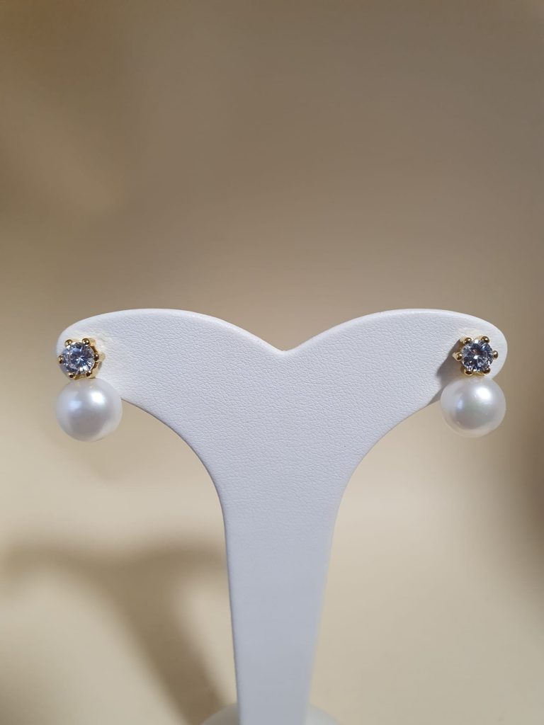 Pendientes de oro con circonita y perla cyma hace 5 años Pendientes de oro con una circonita en la parte de arriba y una perla