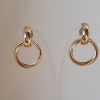 Pendientes de oro con circonitas compuestos de tres círculos y cierre omega.