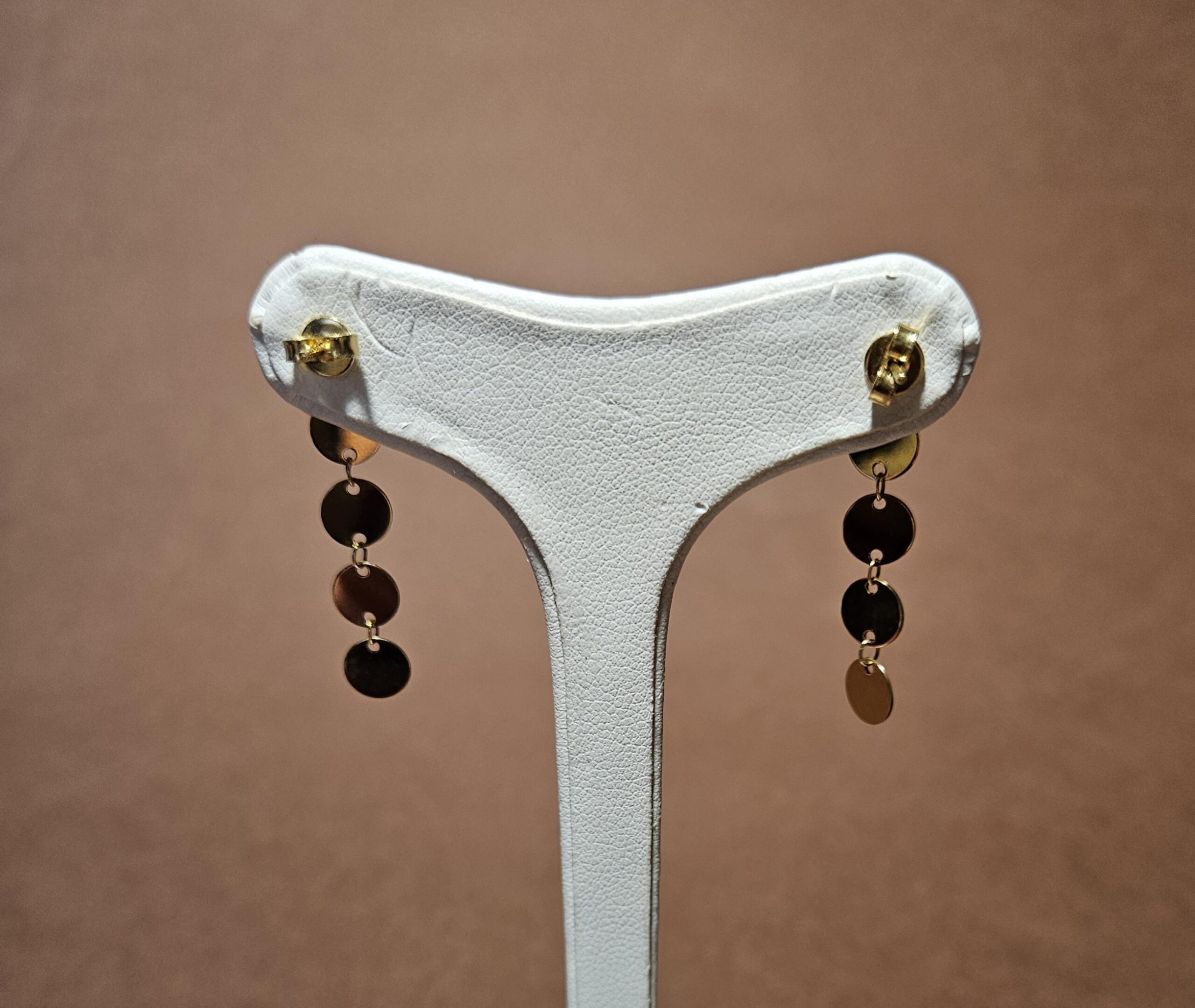 Pendientes en oro de 18 kt largos con círculos y tuercas de presión