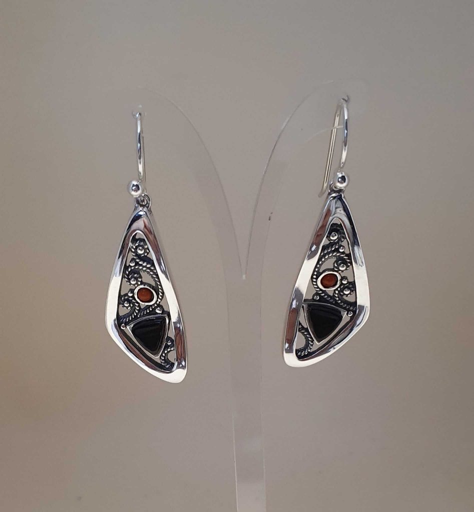 Pendientes de plata de Fink Orfebres cyma hace 4 años Pendientes de plata de Fink Orfebres con azabache, coral y cierre hippie.