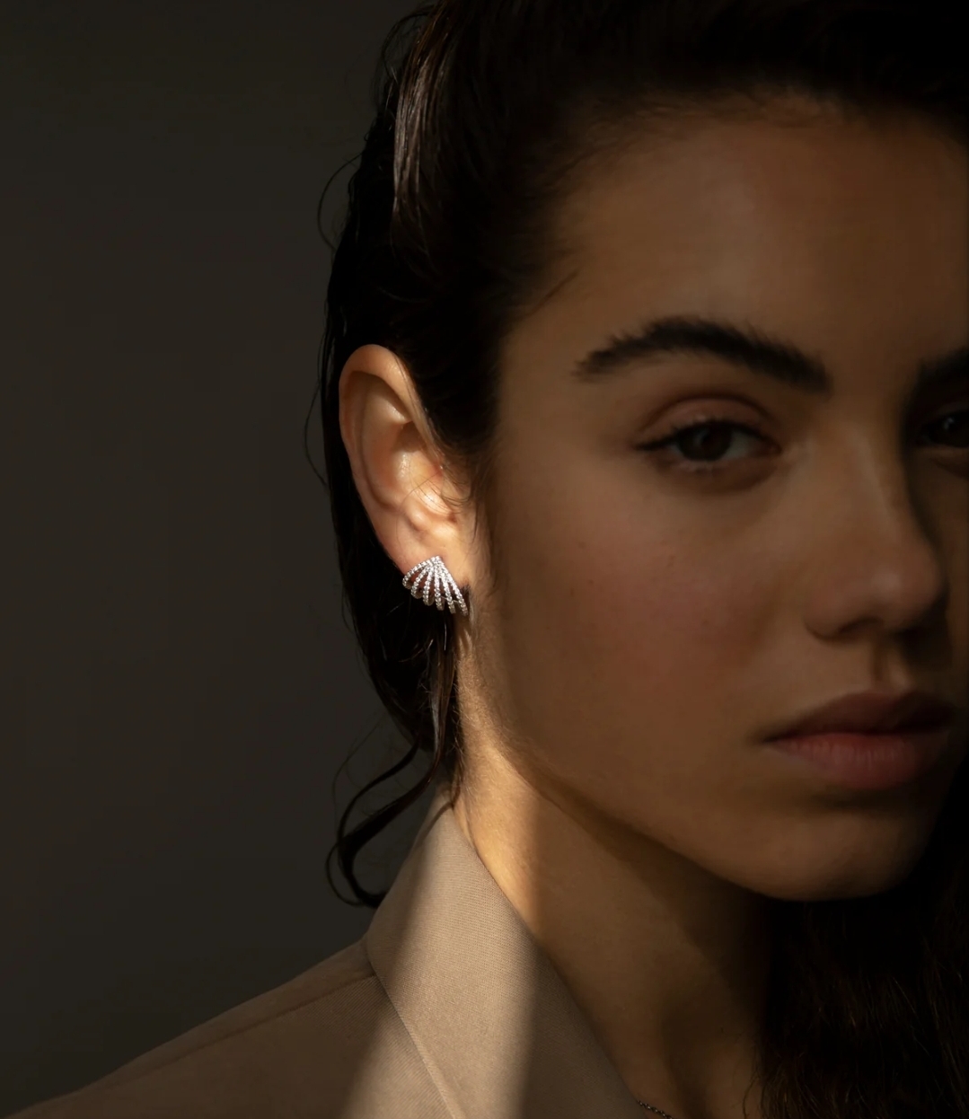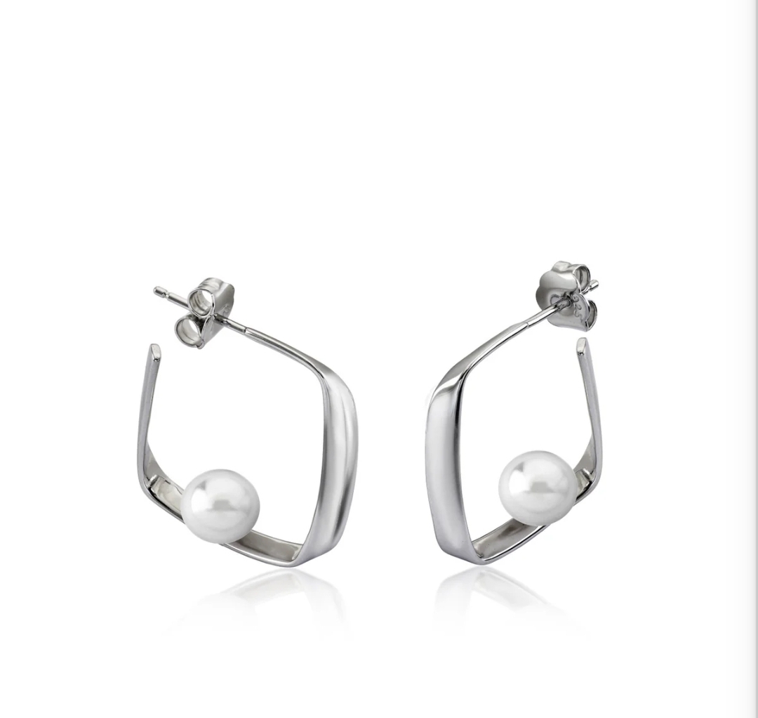 Pendientes originales de plata diseño lóbulo con circonitas