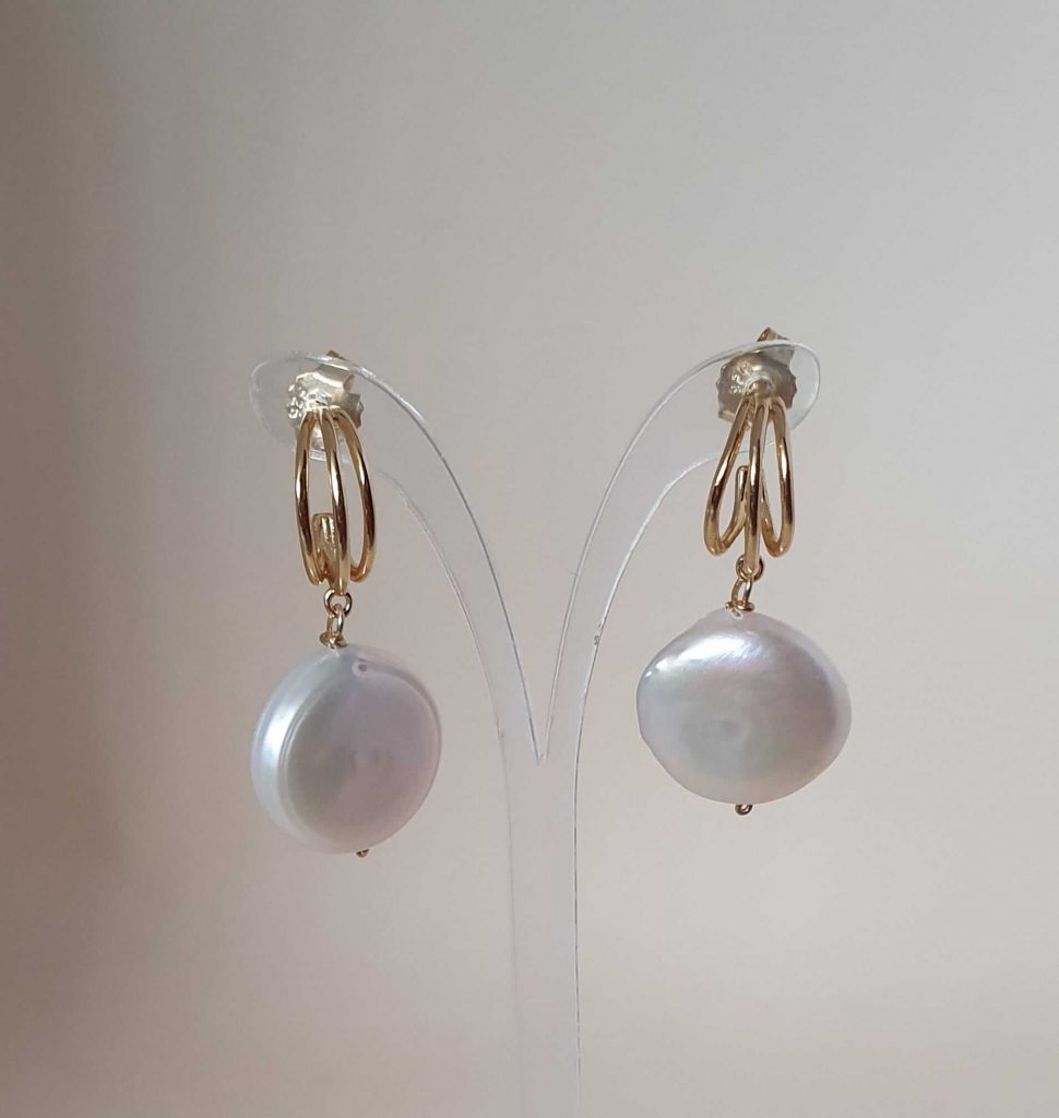 Pendientes de plata dorada con perla cyma hace 4 años Pendientes de plata dorada semi-largos con perla cultivada
