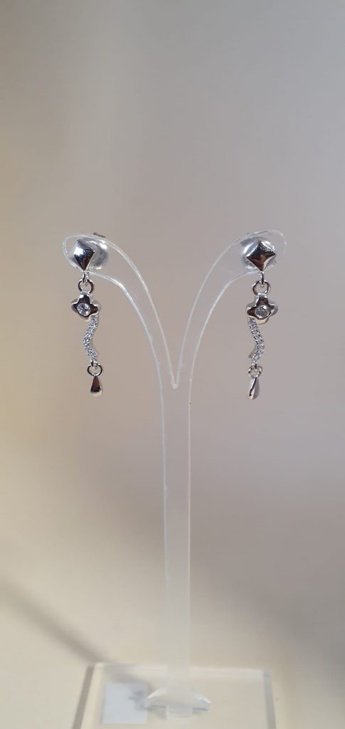 Pendientes de plata largo con circonitas cyma hace 4 años Pendientes de plata largo con circonitas con una flor y una lagrima al final del pendiente.