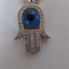 Aretas de plata con circonitas de colores y la mano de fátima colgando también con circonitas de colores