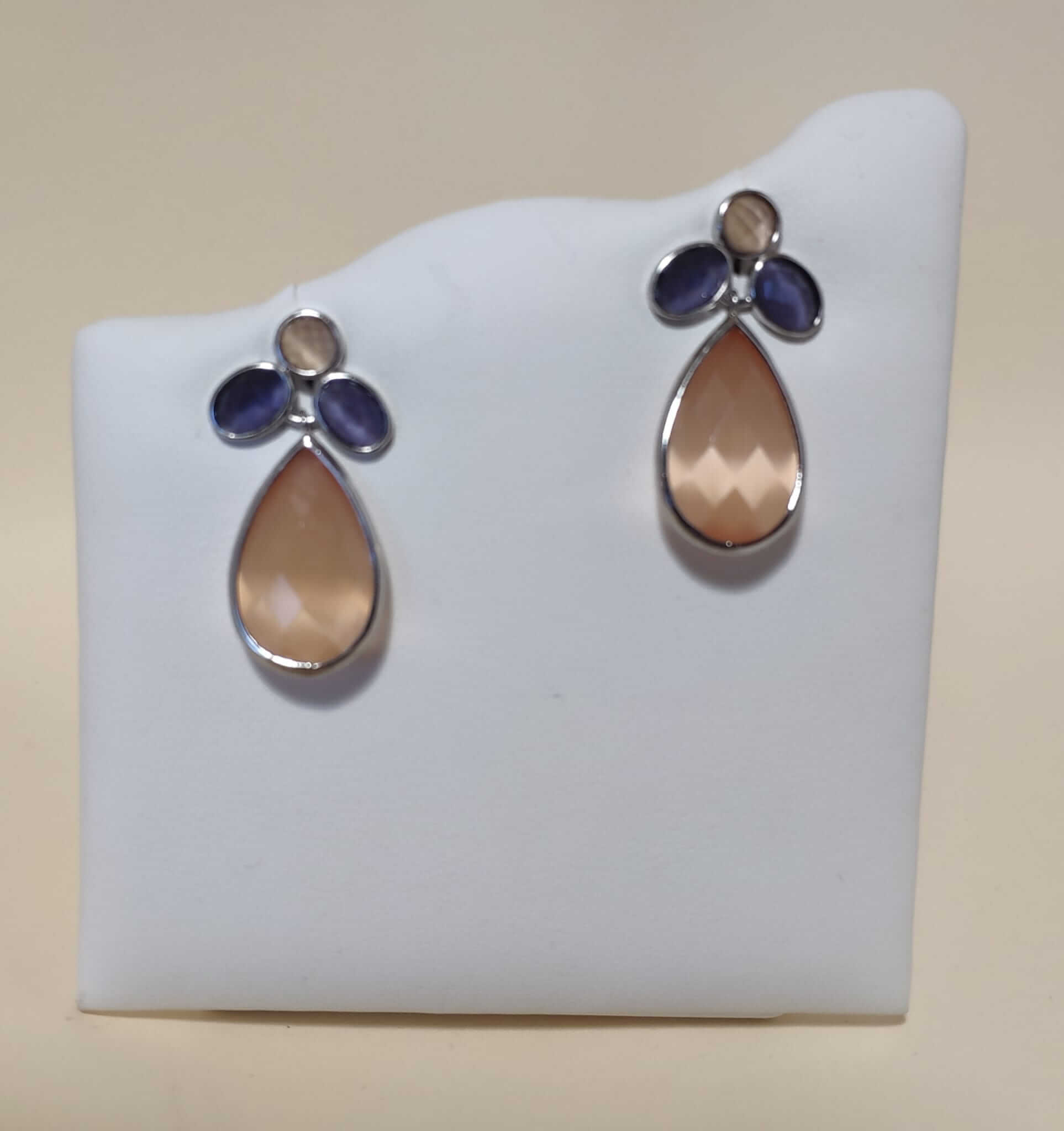 Pendientes de Promojoya en plata con piedras amarillas y moradas