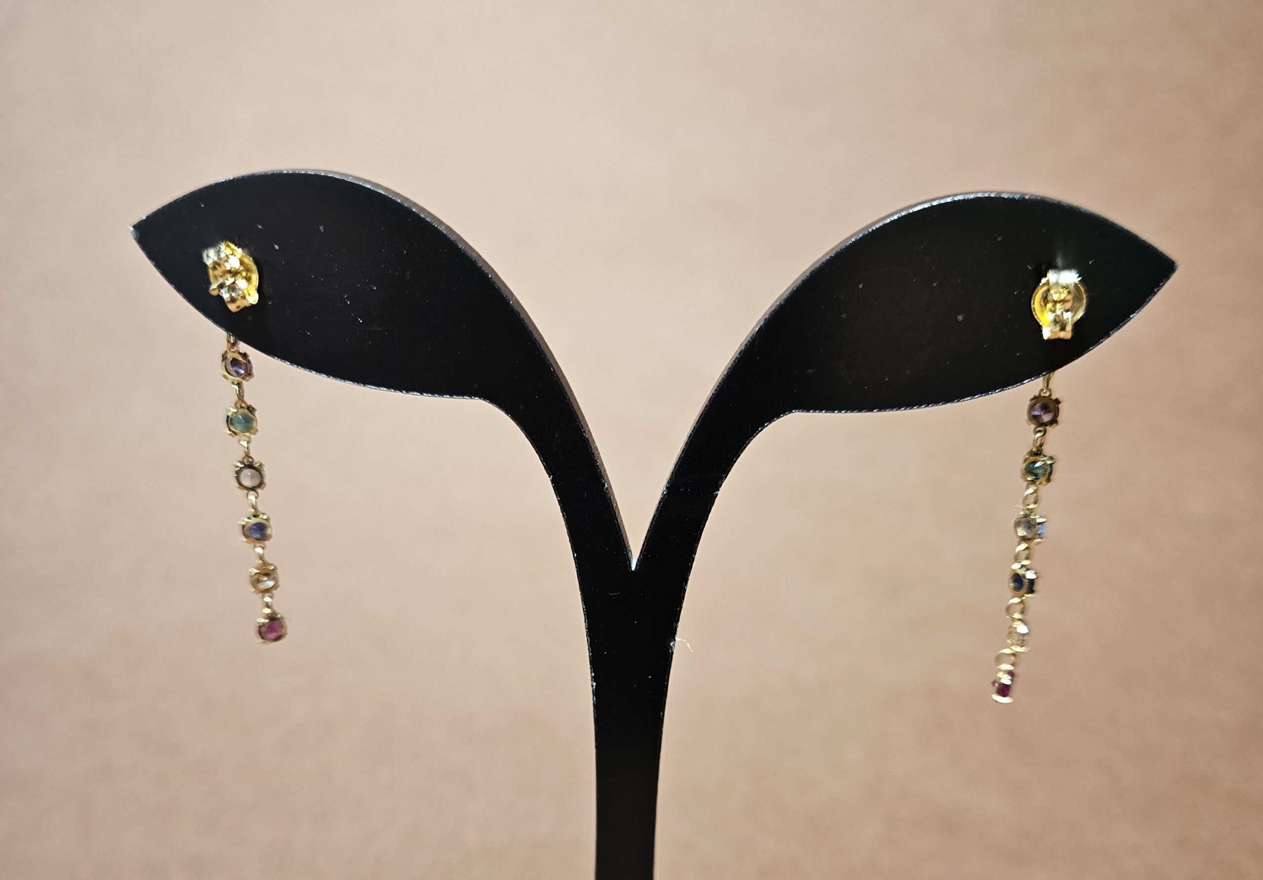 Pendientes en oro de 18 kt largos con varias circonitas de colores
