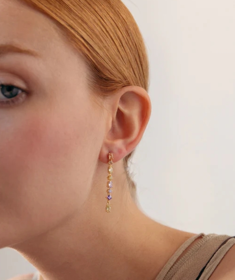 Pendientes hilera plata chapada con circonitas de colores