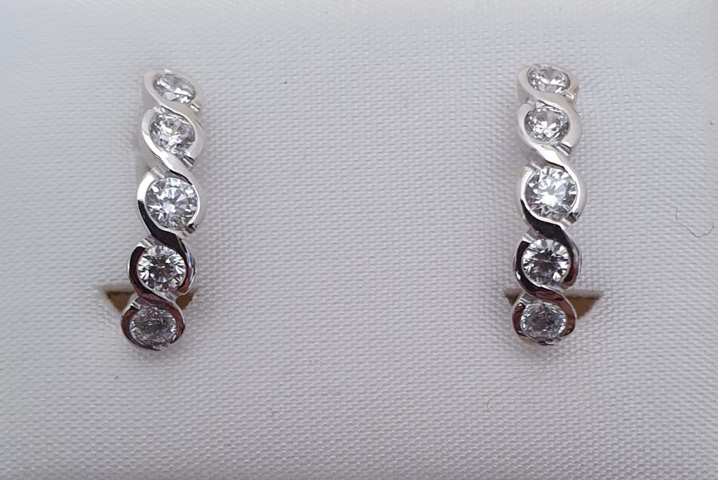 Pendientes oro blanco con circonitas cyma hace 4 años Pendientes de oro blanco como trenzados con circonitas y con cierre catalán.