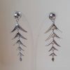 Pendientes tipo areta con huellas de mascota en plata dorada con circonitas negras en la areta y unas huellas de mascota colgando.