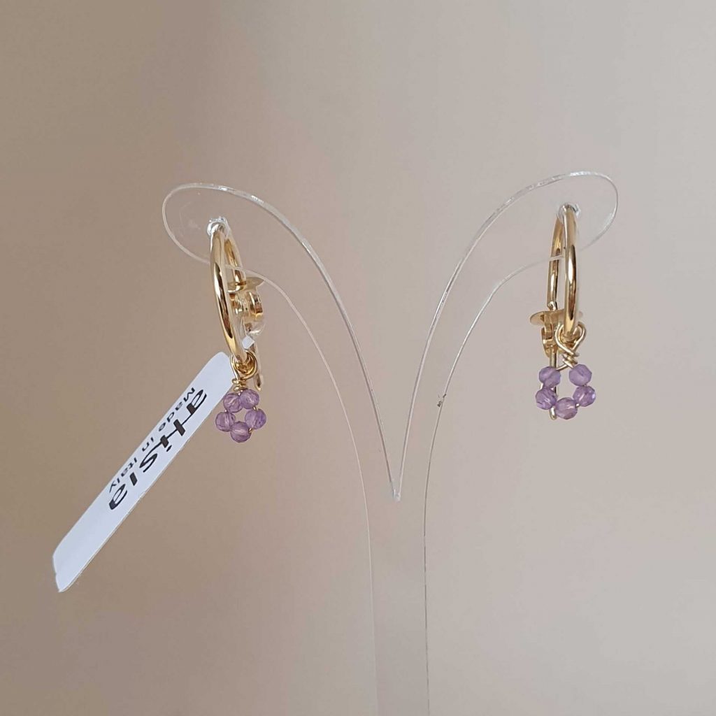 Pendientes tipo aretas de Alisia cyma hace 4 años Pendientes tipo aretas de Alisia de plata chapada con flor de amatista colgando