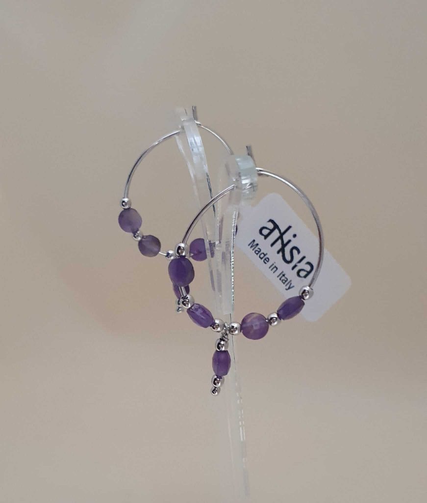 Pendientes tipo aretas medianas de Alisia cyma hace 4 años Pendientes tipo aretas medianas de Alisia de plata con amatistas alrededor y una amatista colgando.