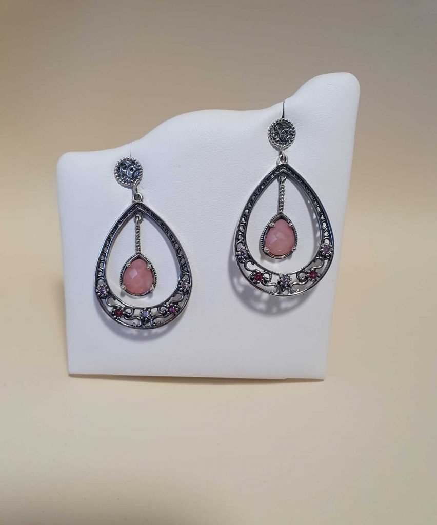 Pendientes Top Silver con cuarzo cyma hace 5 años Pendientes largos Top Silver con forma ovalada en plata con cuarzo rosa y circonitas rosas.