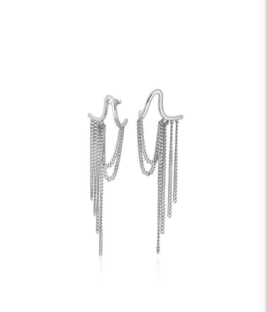 Pendientes trepadores en plata largos cyma hace 2 meses Pendientes trepadores largos de Lineargent en plata diseño de cortina de cadenas