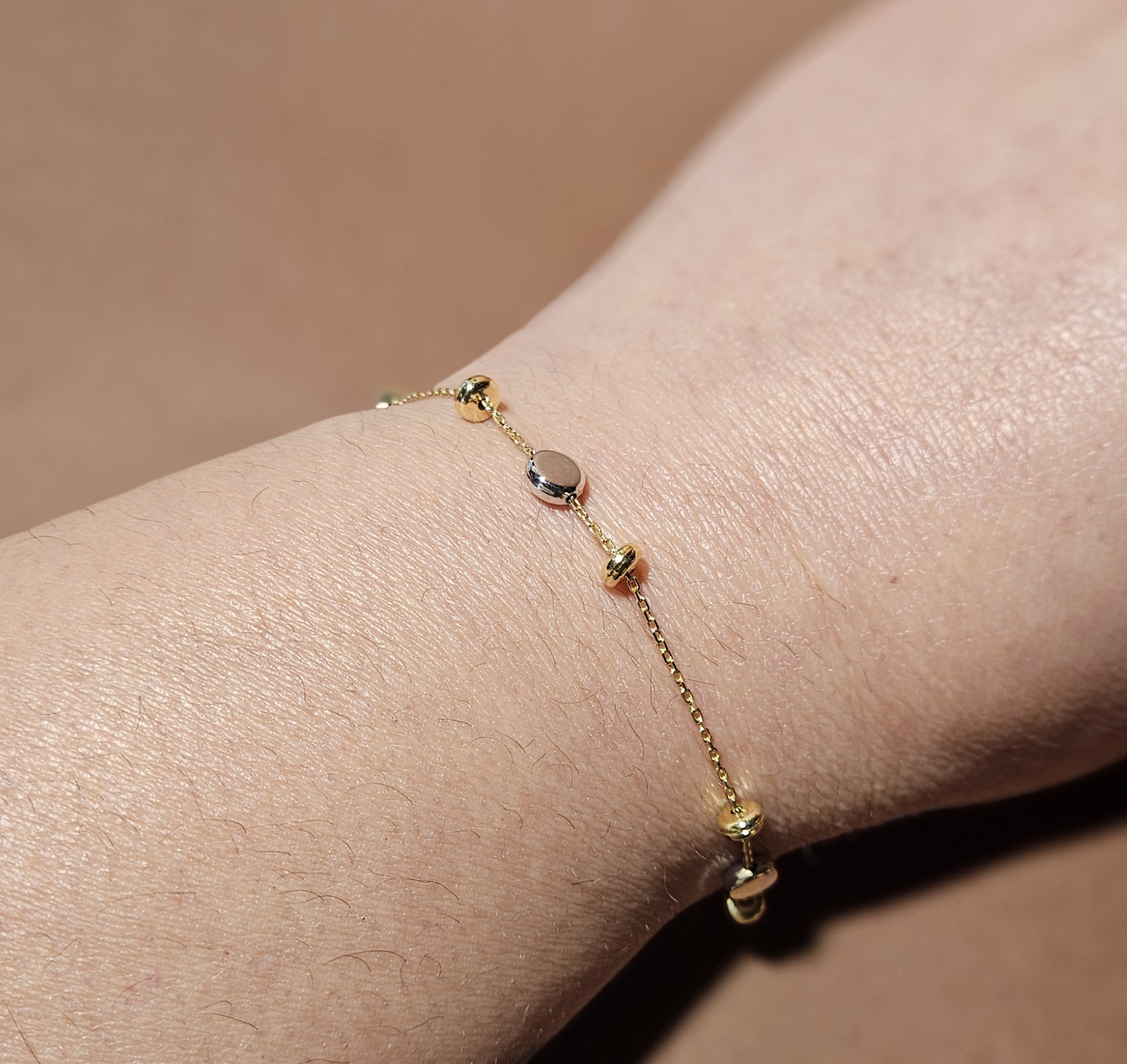 Pulsera de oro fina de 18 kt con oro blanco y oro amarillo