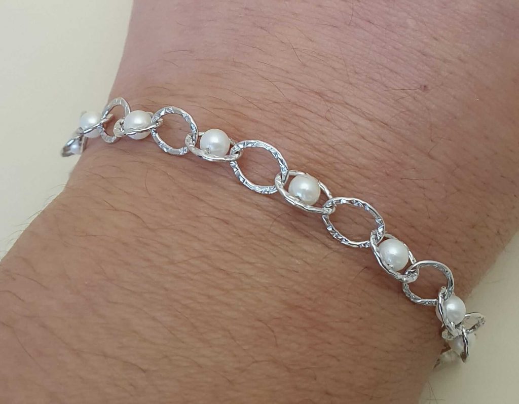 Pulsera de plata de Visetti cyma hace 4 años Pulsera de plata de Visetti con eslabón ovalado y con perlas