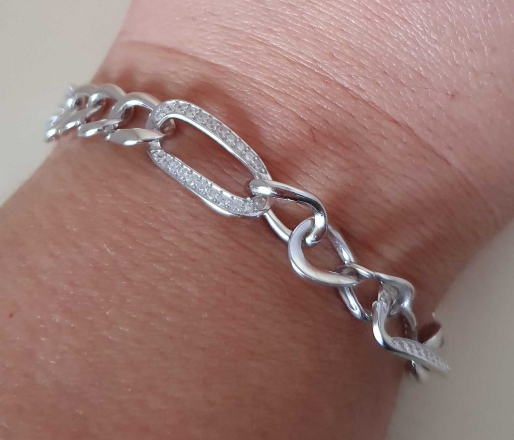Pulsera plata eslabón cyma hace 4 años Pulsera plata de Promojoya de eslabones anchos, unos son más anchos que los demás y llevan circonitas
