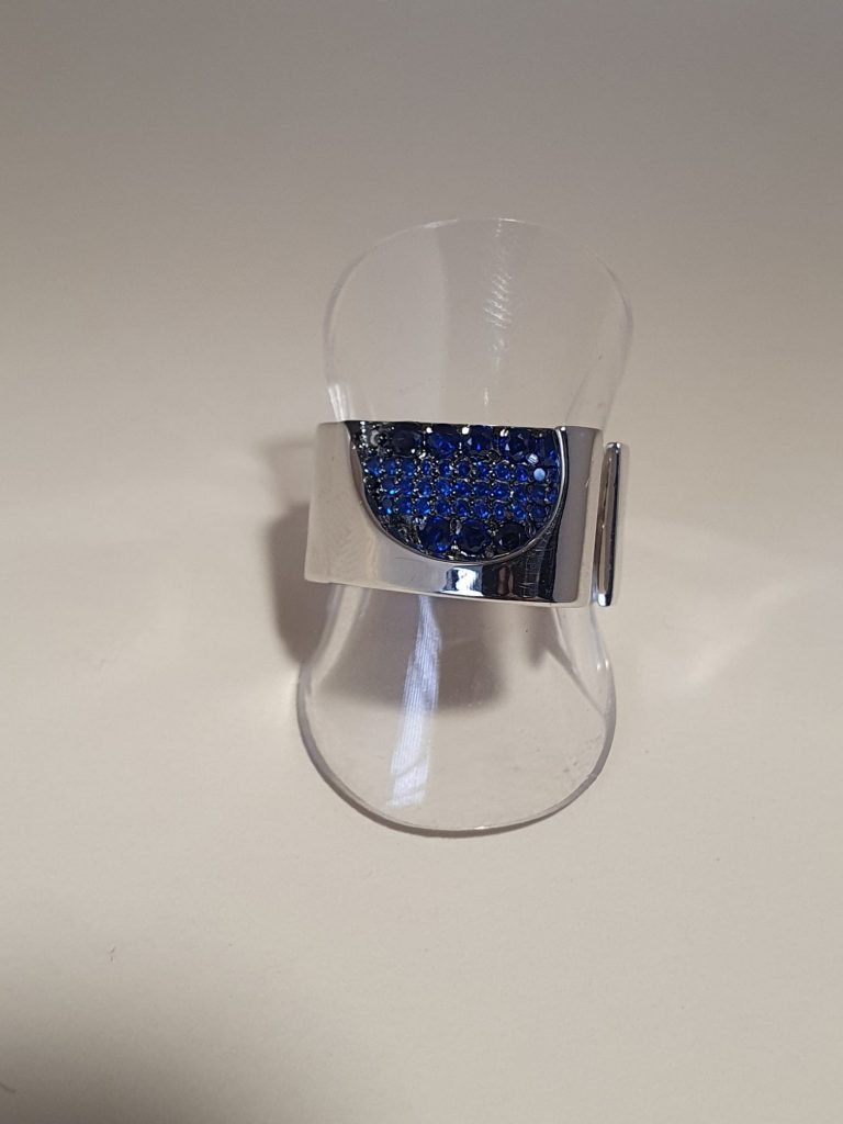 Sortija de plata con circonitas azules. Tiene una apertura por una lado asi que se puede ampliar un poco o achicar un poco.