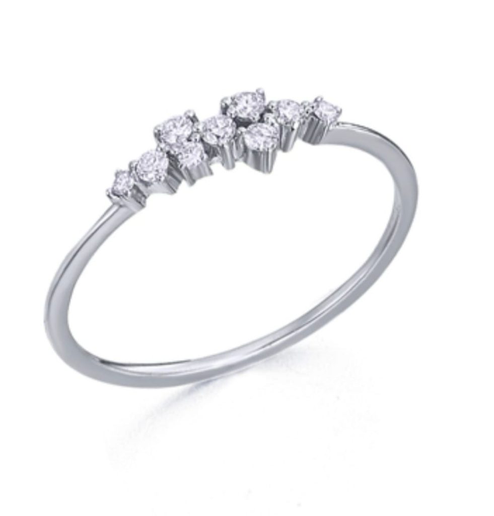 Sortija de la Carré cascada de Diamantes de oro blanco 18kt. La piedra es un diamante de talla brillante, el peso es de 0,15 quilares, el color H y la pureza SI. El número de la sortija es el 15