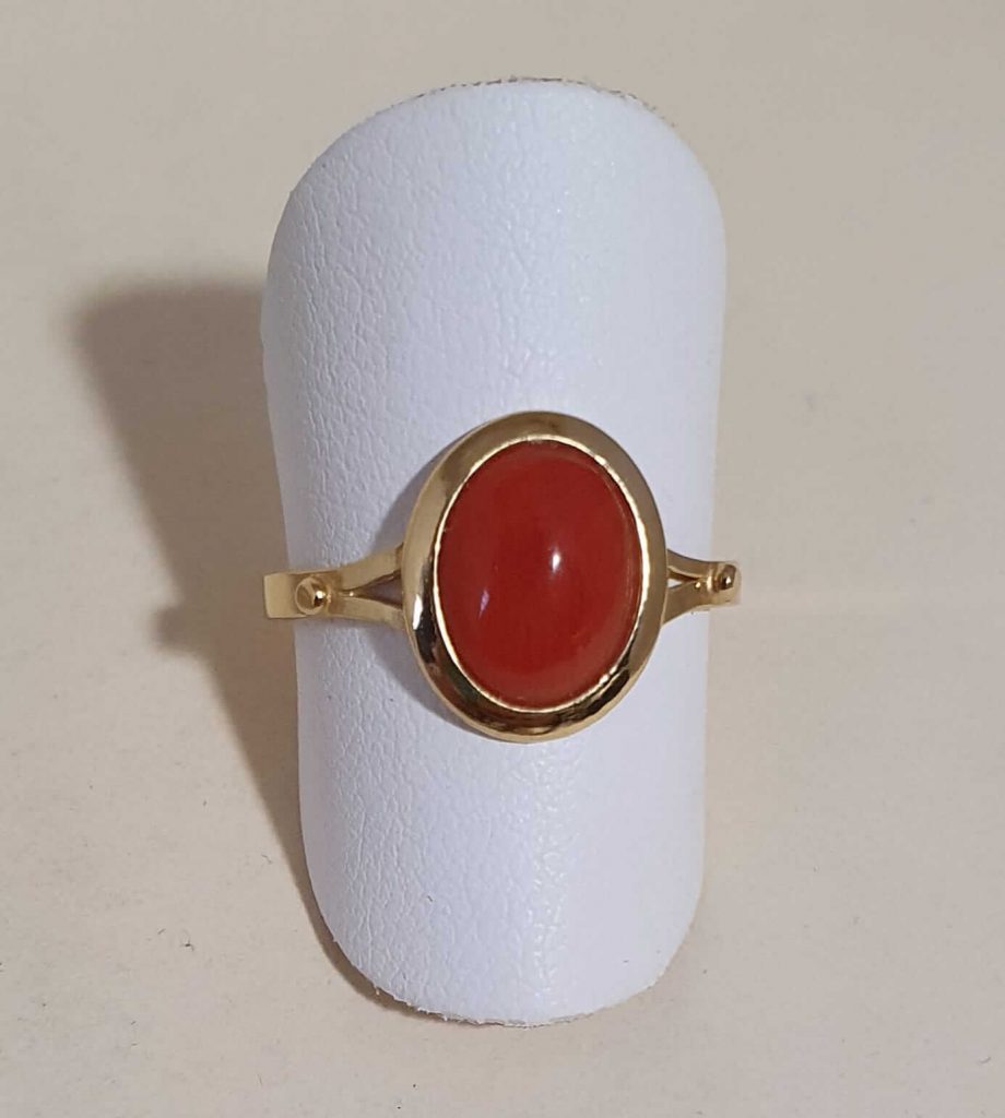 Sortija de oro amarillo con coral. Talla 16 tatum