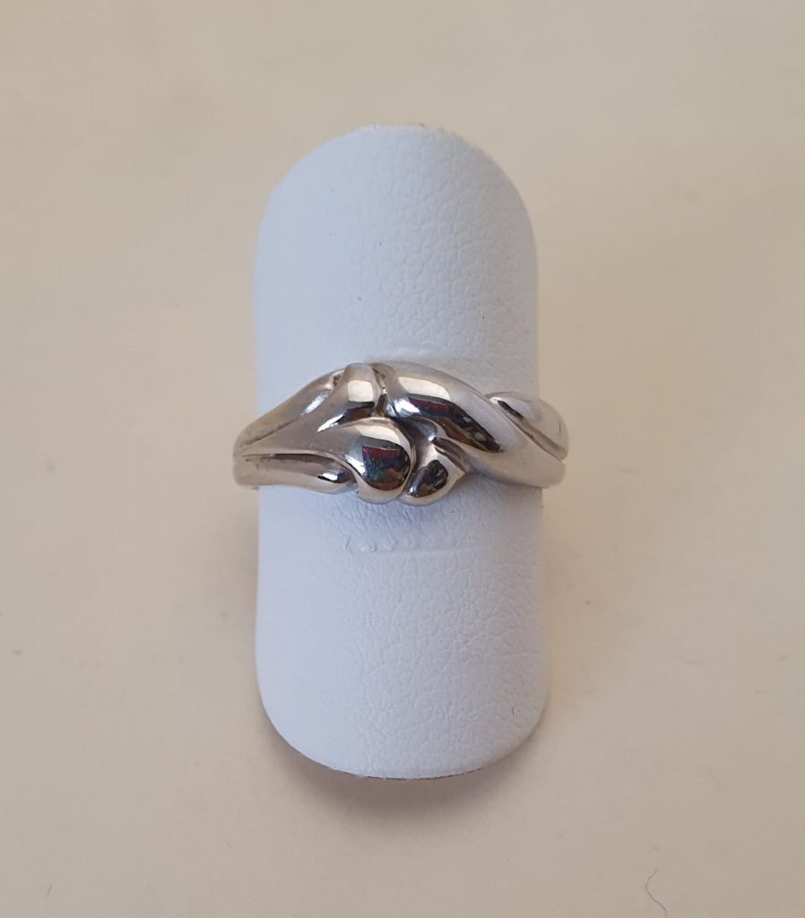Sortija de oro blanco cyma hace 4 años Sortija de oro blanco en brillo con motivo entrelazado en el centro. Talla 13 Tatum