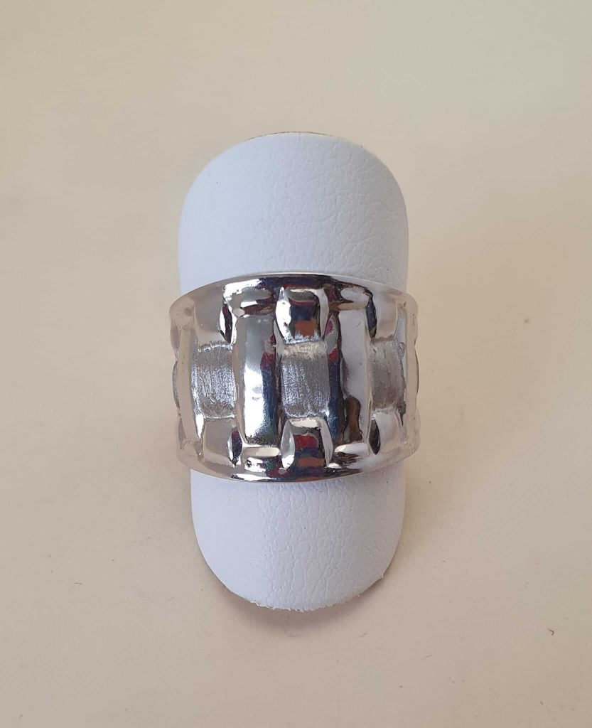 Sortija ancha de oro blanco todo brillo. Talla 17 Tatum
