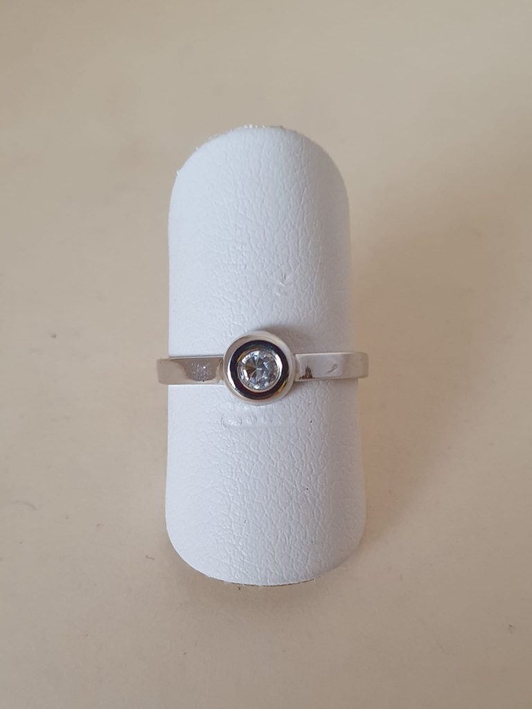 Sortija de oro blanco cyma hace 4 años Sortija de oro blanco fina con chatón con circonita. Talla 10 Tatum