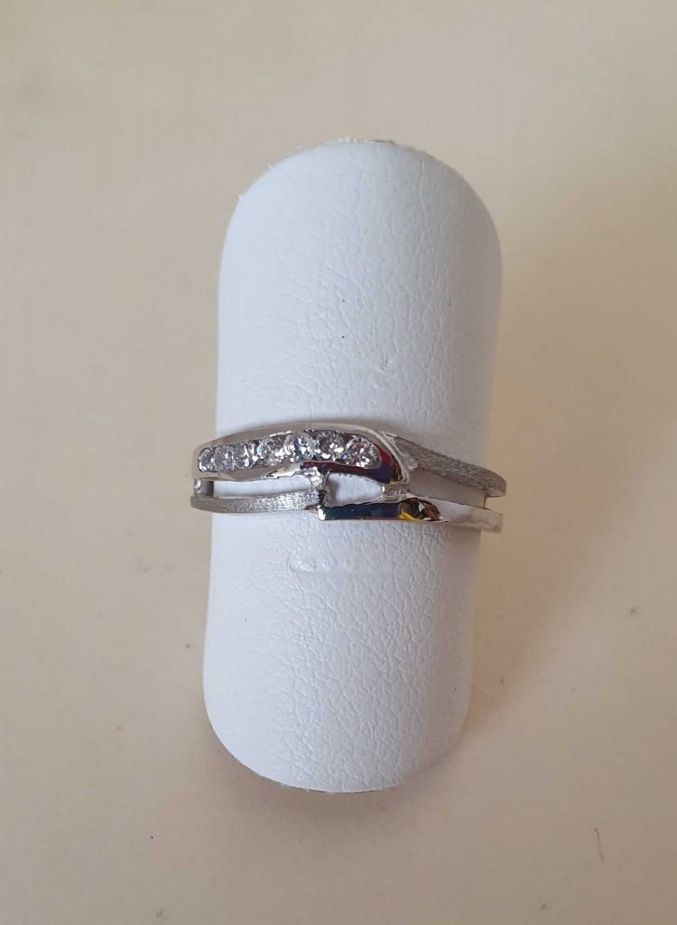 Sortija de oro blanco con circonitas cyma hace 4 años Sortija de oro blanco con circonitas, es doble por delante. Talla 13 Tatum