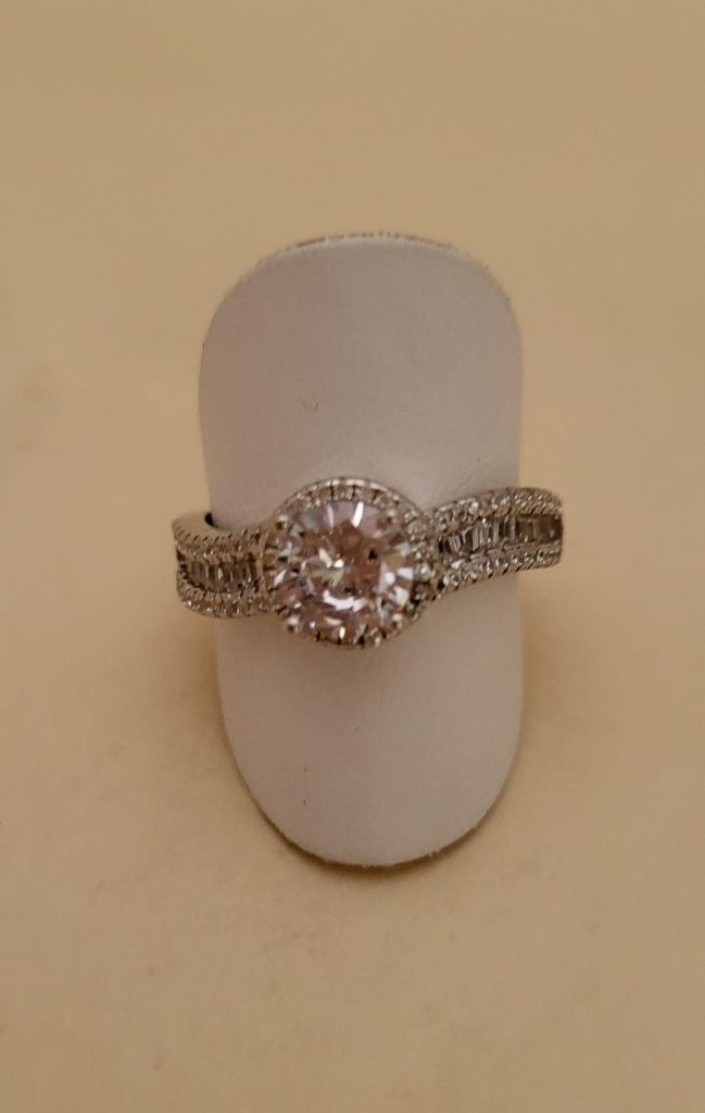 Sortija de plata cyma hace 4 años Sortija de plata con rosetón central con circonitas y circonitas a cada lado de rosetón. Talla 20 tatum