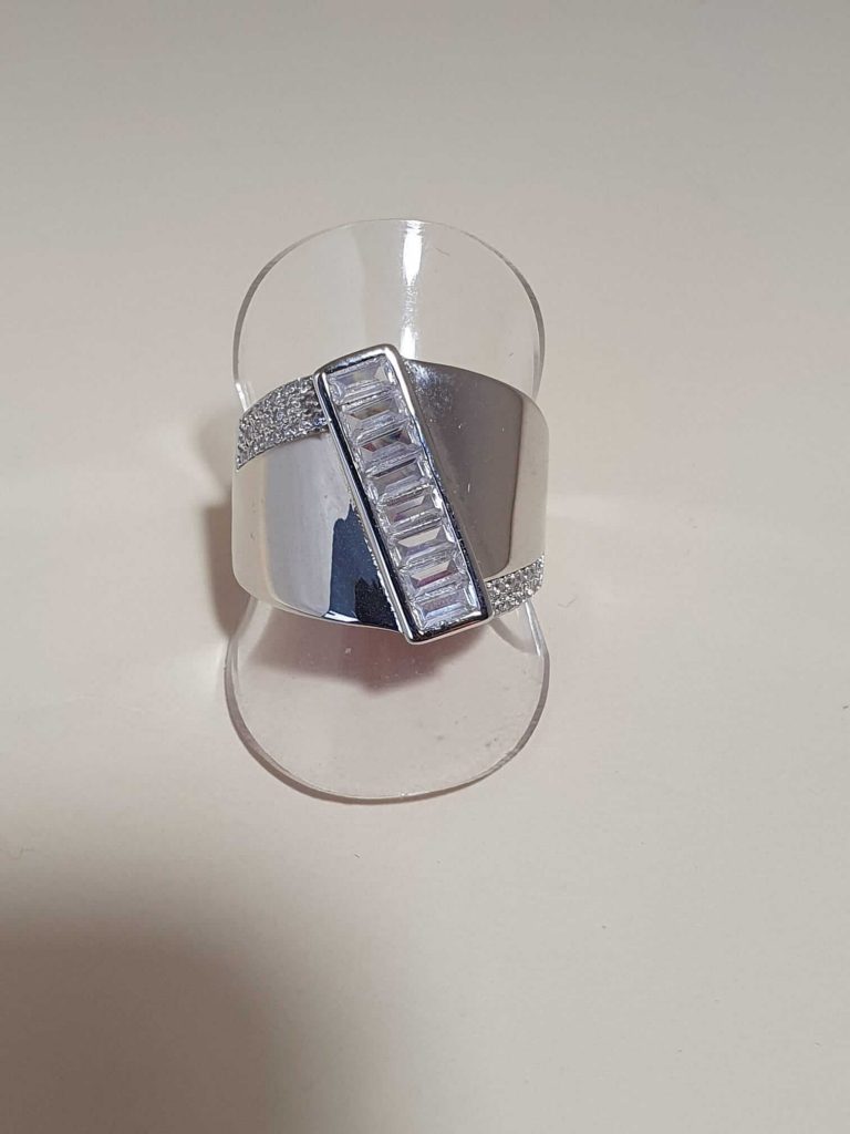 Sortija plata con baguette circonitas cyma hace 5 años Sortija de plata con baguette de circonitas en el centro y tiras de circonitas en los lados