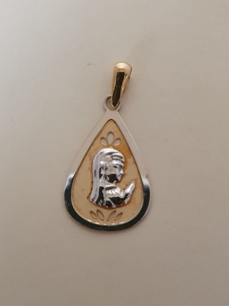 Virgen niña gota de agua cyma hace 5 años Virgen niña en oro en forma de gota de agua. Con la virgen en oro blanco y el borde también